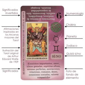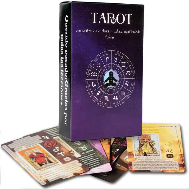 • Tarot Rider Waite con ilustraciones y palabras claves para mejor interpretación.